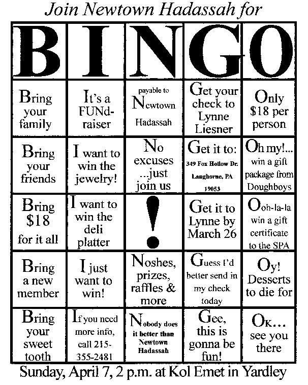 nternal communications - Hadassah event fliers (pro bono) Bingo Golda
